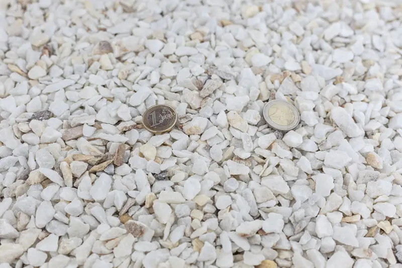 Dentro de las gravas, destaca la china blanca, que tiene múltiples utilidades y aplicaciones, como son la decoración de jardines, la realización de paseos y caminos de jardín, el relleno de jardineras y la realización de macizos y alcorques.