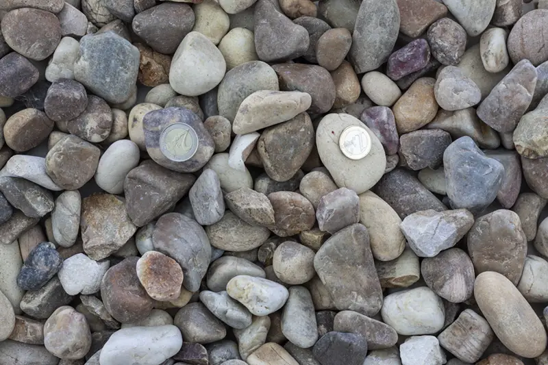 Grava procedente de la extracción de arenas de río que tras su lavado y clasificación se usan como cobertura para el suelo dándole un aspecto natural a la vez que rústico.