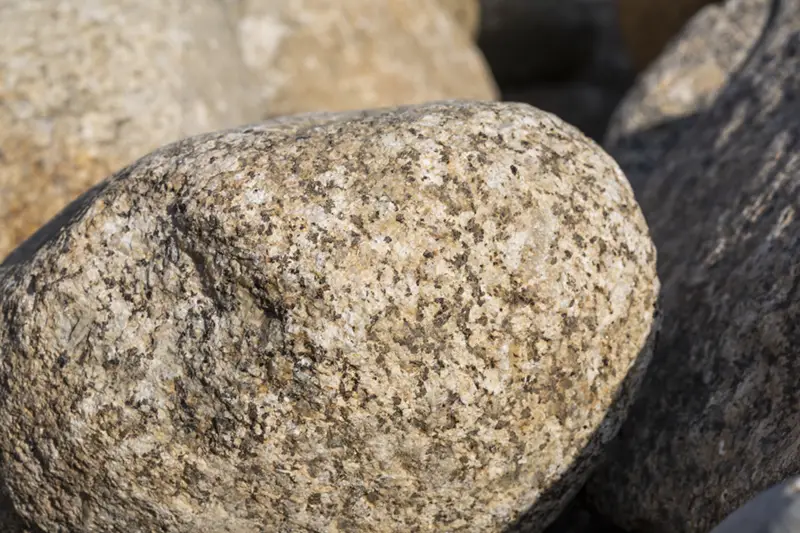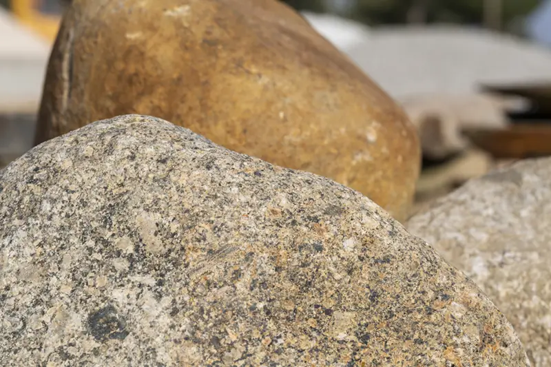 El bolo de granito, cuyo calibre puede oscilar entre los 100 y 400 mm aproximadamente, como piedra decorativa puede usarse bien para su disposición en el suelo (los más pequeños) o para su colocación en gaviones.