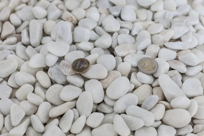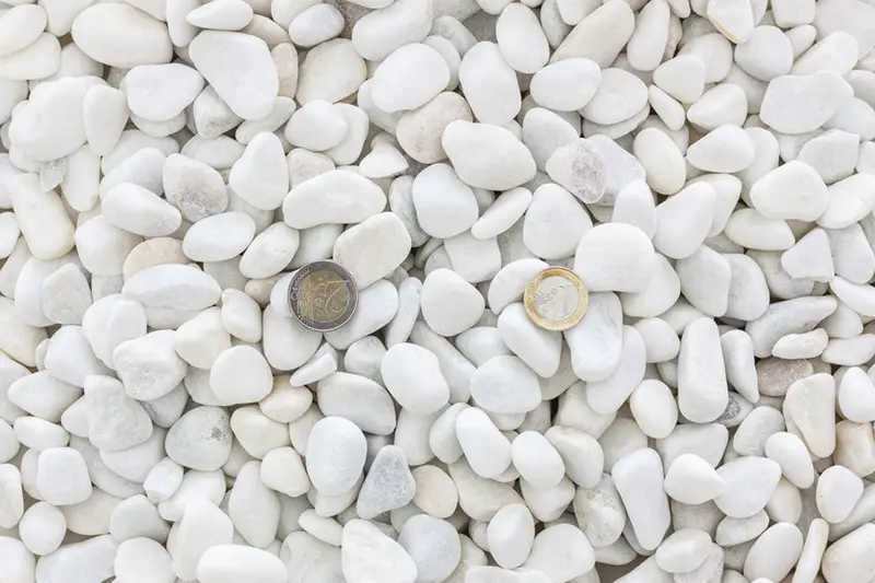 El canto rodado blanco es una piedra blanca para decoración de jardín. Su aspecto es más blanquecino que otros cantos y eso le confiere una gran imagen y un aspecto limpio. Al tener una forma redondeada sin aristas se puede caminar sobre él, incluso aunque sea con los pies descalzos. Es una solución que da un aspecto lujoso al jardín con un precio contenido. Para favorecer su durabilidad y, sobre todo, mantener su color blanco, es recomendable para lugares soleados y donde no exista demasiada humedad. No obstante, si la superficie es muy grande y la zona muy soleada, puede provocar deslumbramiento y sensación incómoda.